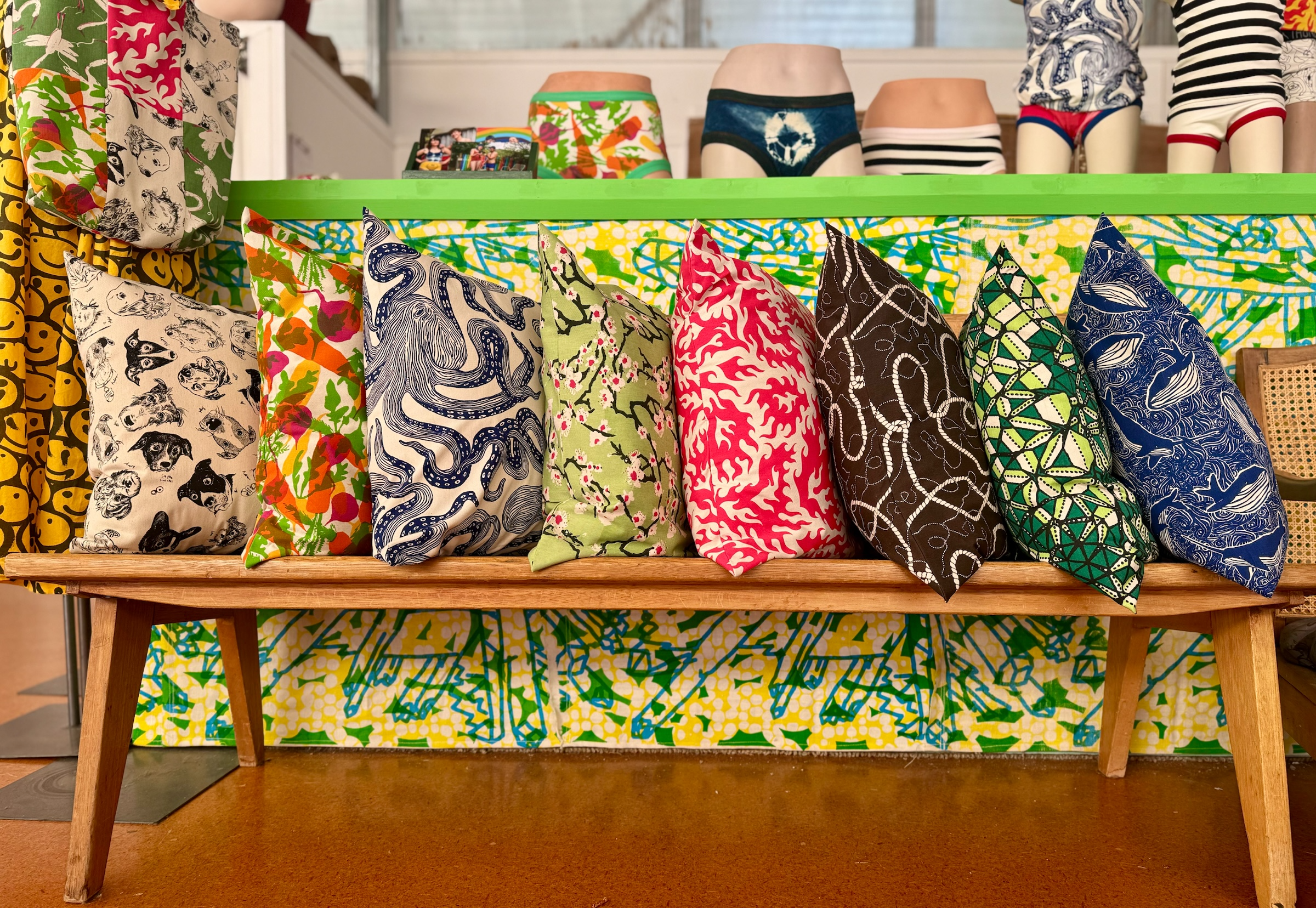A very simple pillowcase fold cushion cover in a fab collection of bold prints to brighten up your home. Made from fairtrade certified organic cotton drill with , no zips or fasteneings.