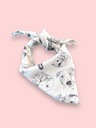 Approx 75cm across the longest side and approx 35cm deep at the point. It is sewn off centre to give it less bulk, thinner ties and a more jaunty look. Made from regeneratively grown cotton. Designed to fit most pooches you can tie a bandanna around!