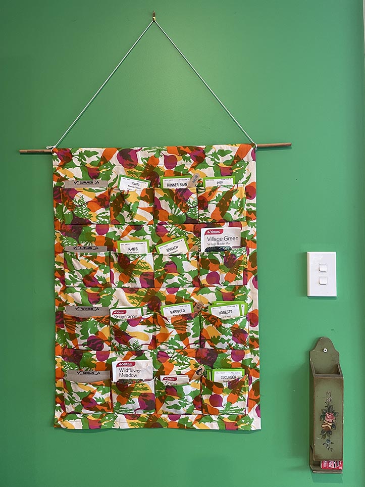 A handy organiser with 16 pockets! Can be used as a seed calendar, in the home office, in the kitchen, a sewing notion stash holder and more. Made from fairtrade certified organic cotton drill.