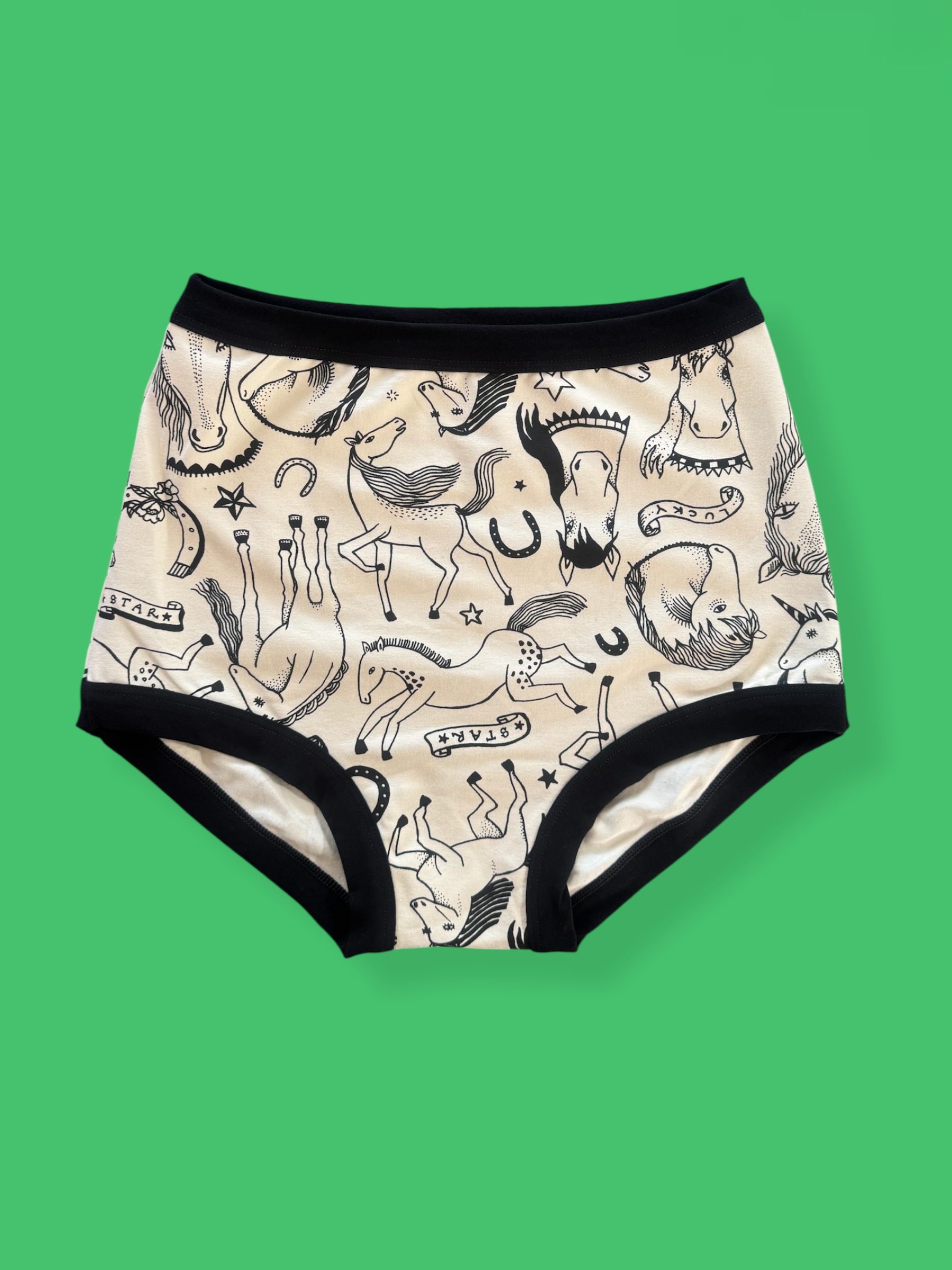 SKY RISE THUNDERPANTS, an extra high waisted version of our originals. They are a very comfortable full brief that sit high on your natural waist and taper in at the top, so stay right where they are meant to all day long.