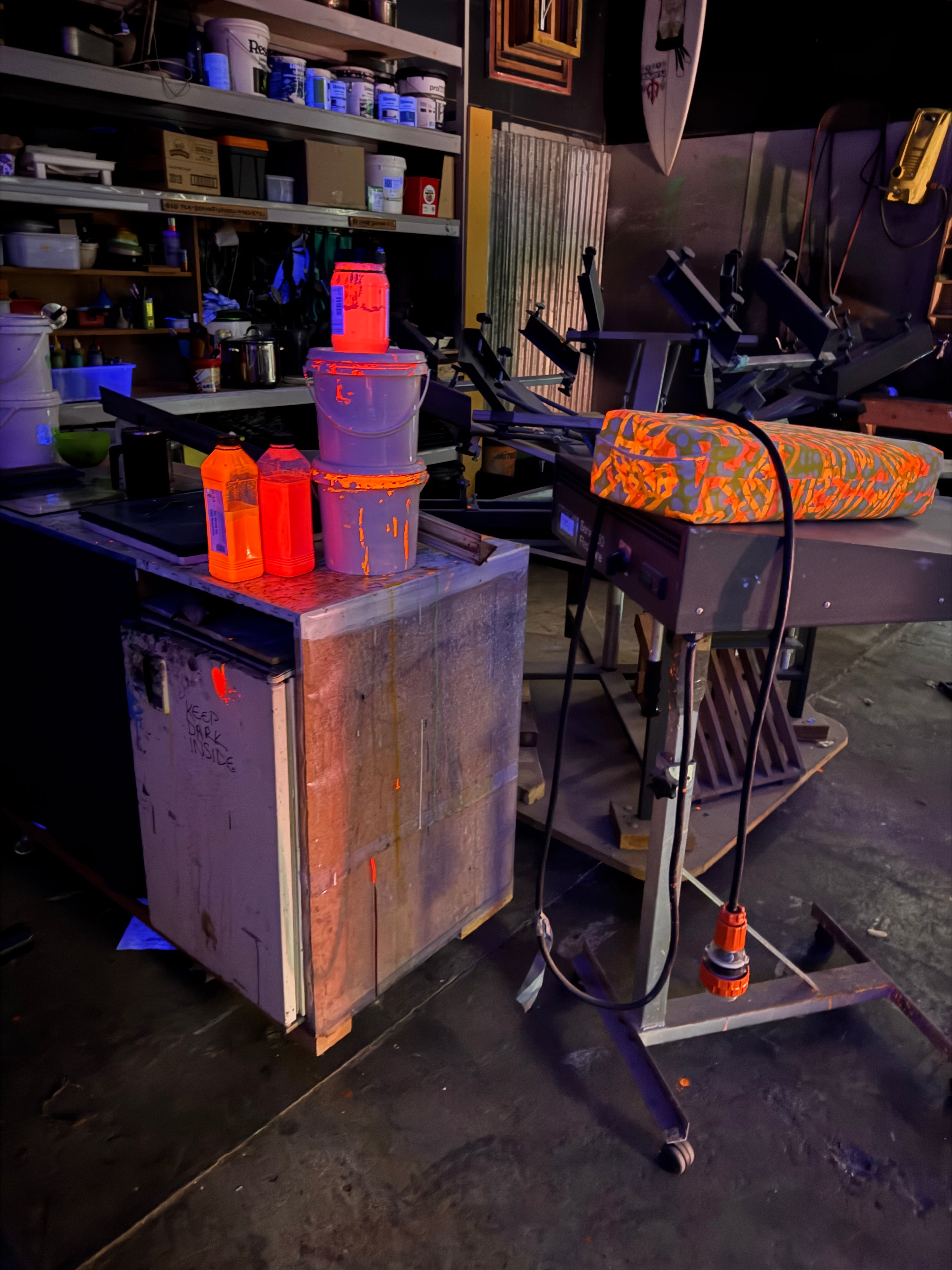 Hand printed right here in our workroom by Geoff. These may have print imperfections but that just adds to their rugged individuality!