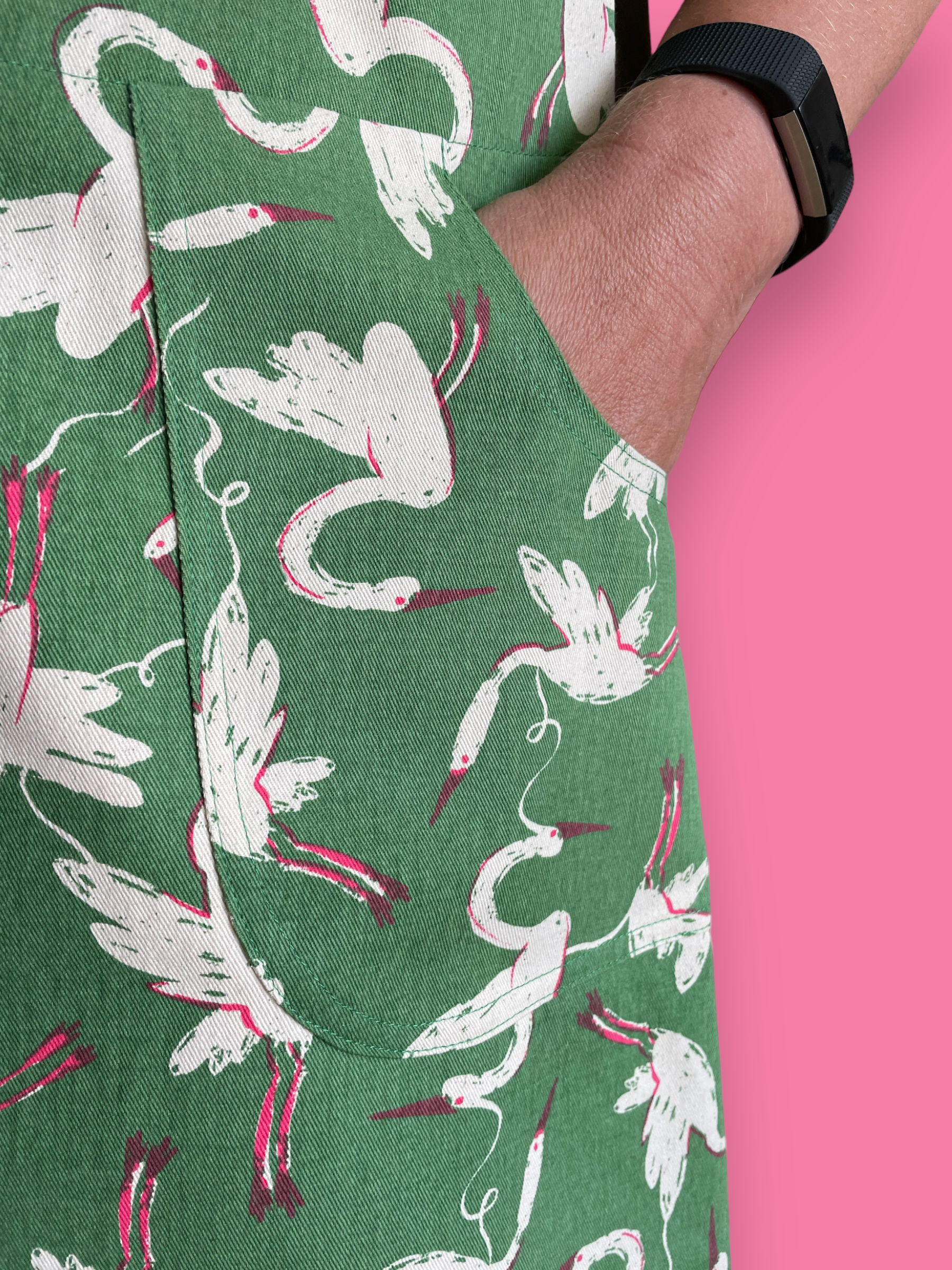 This fabric is 100% fairtrade, organic cotton drill. This garment is hand printed and then made right here in our workroom in Martinborough, New Zealand by a lovely woman called Ngaire.