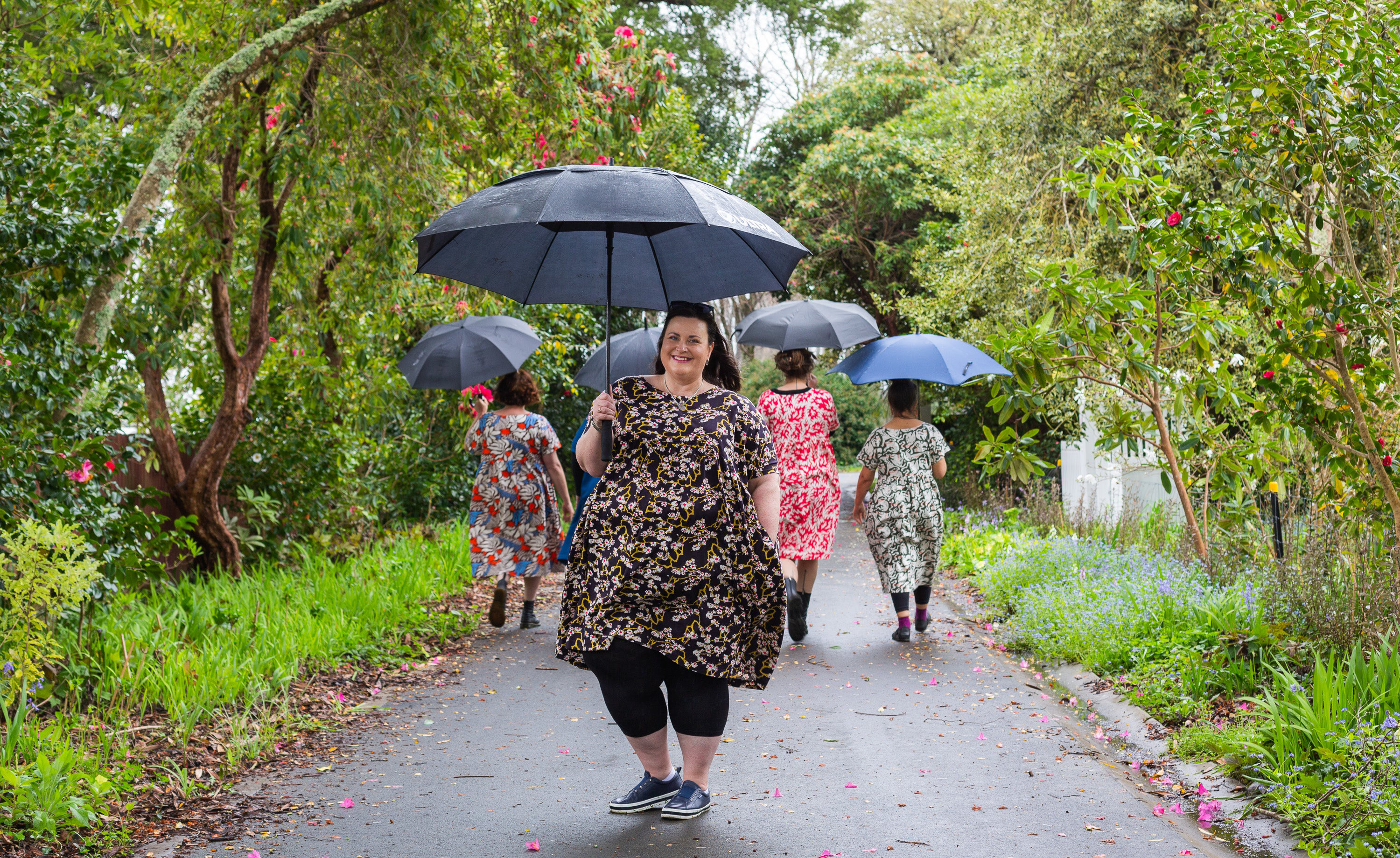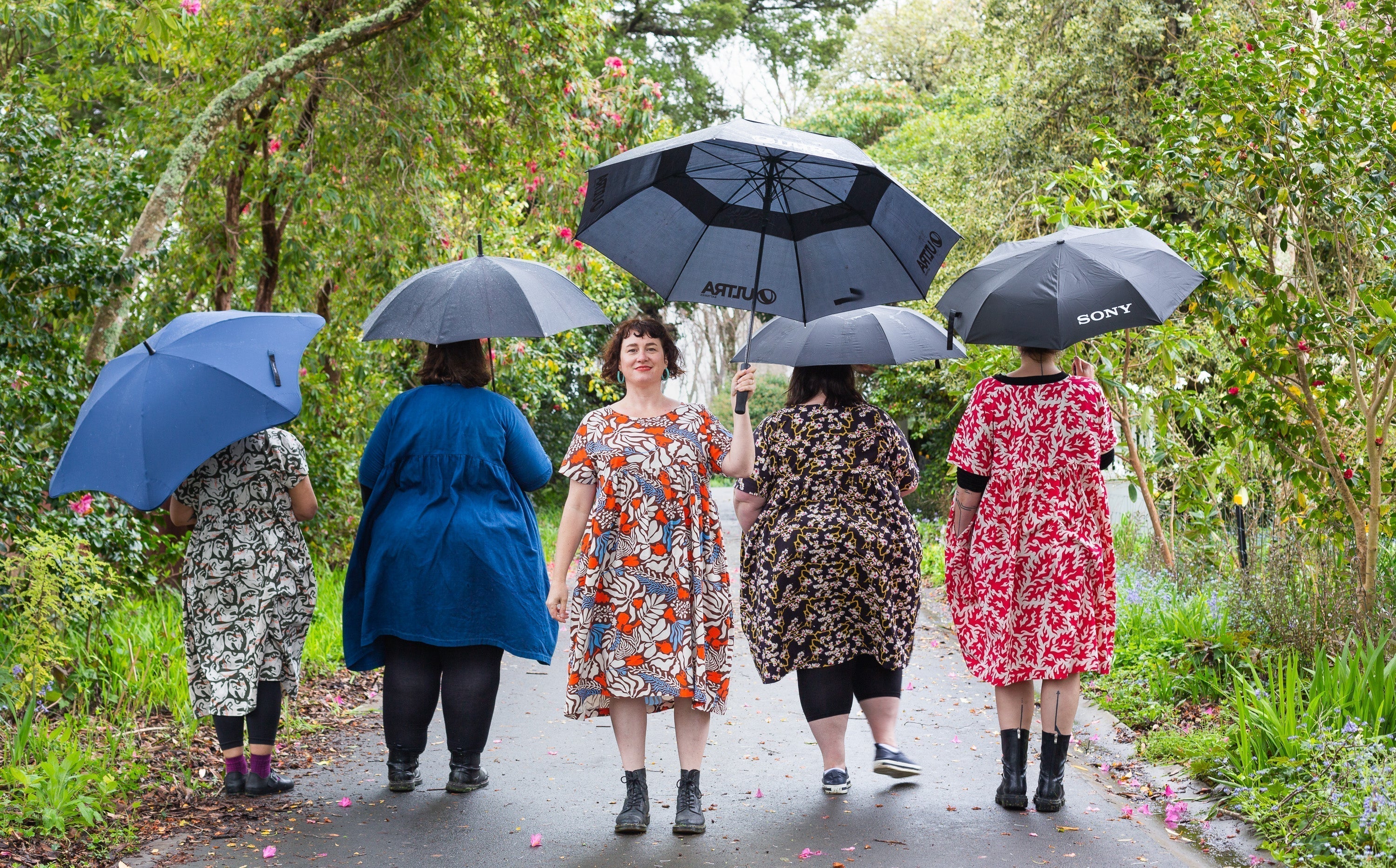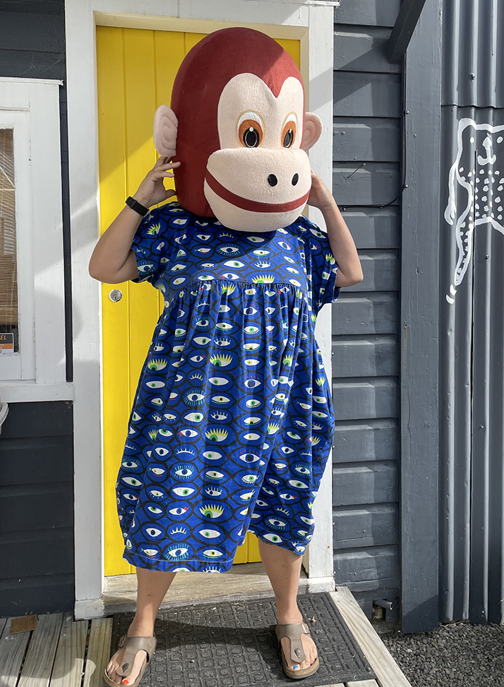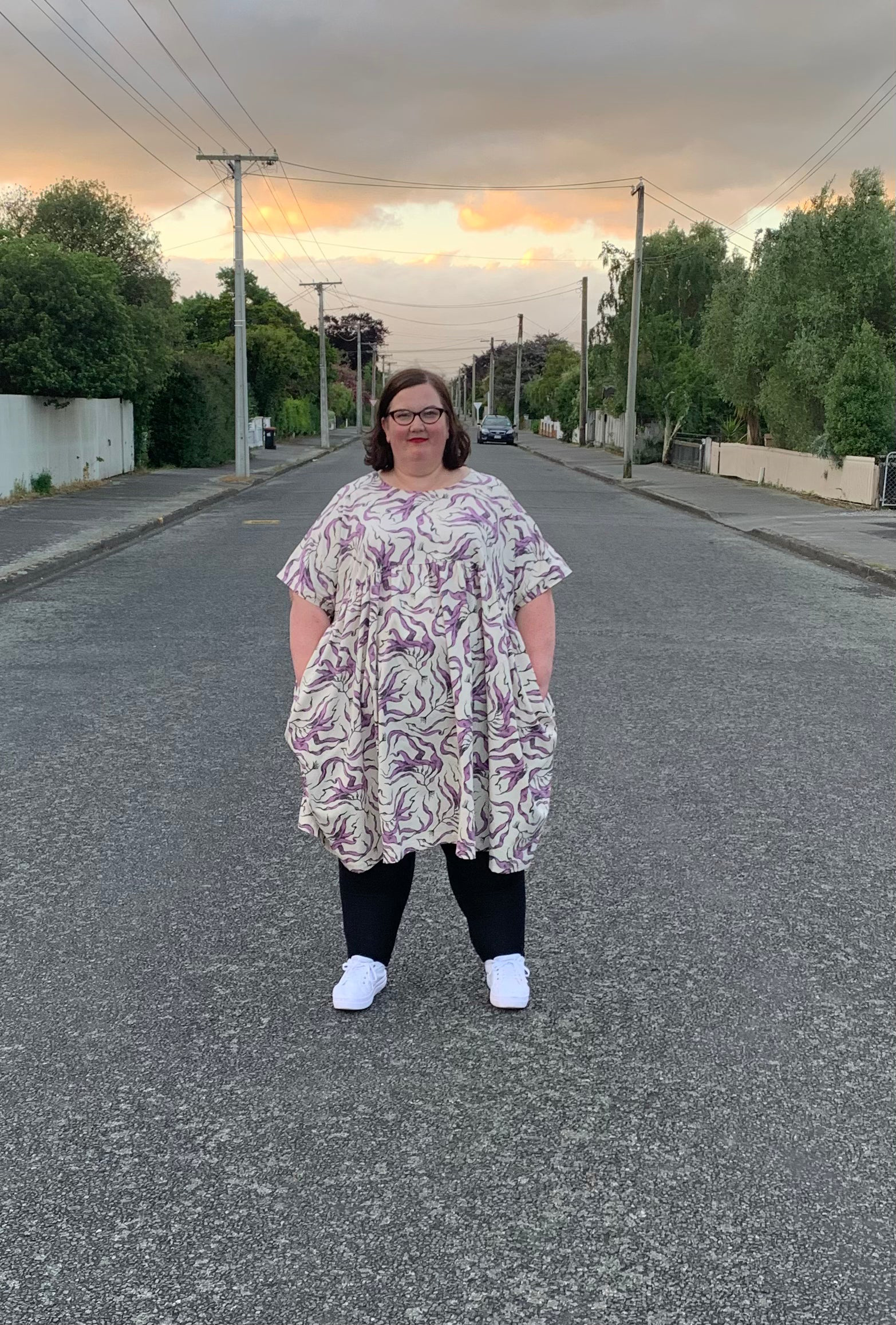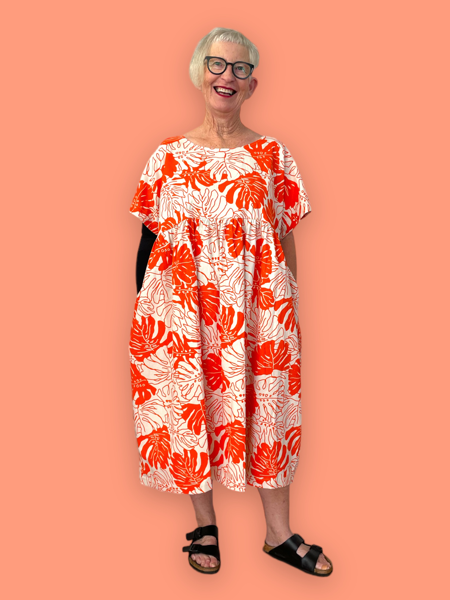 NB: THE SLEEVES HAVE BEEN ALTERED TO A MUCH ROOMIER FIT SINCE THIS PHOTO OF MORAG IN THE BLOSSOM FROCK WAS TAKEN. SEE PHOTO OF EMMA IN THE KELP FOR UPDATED FIT.