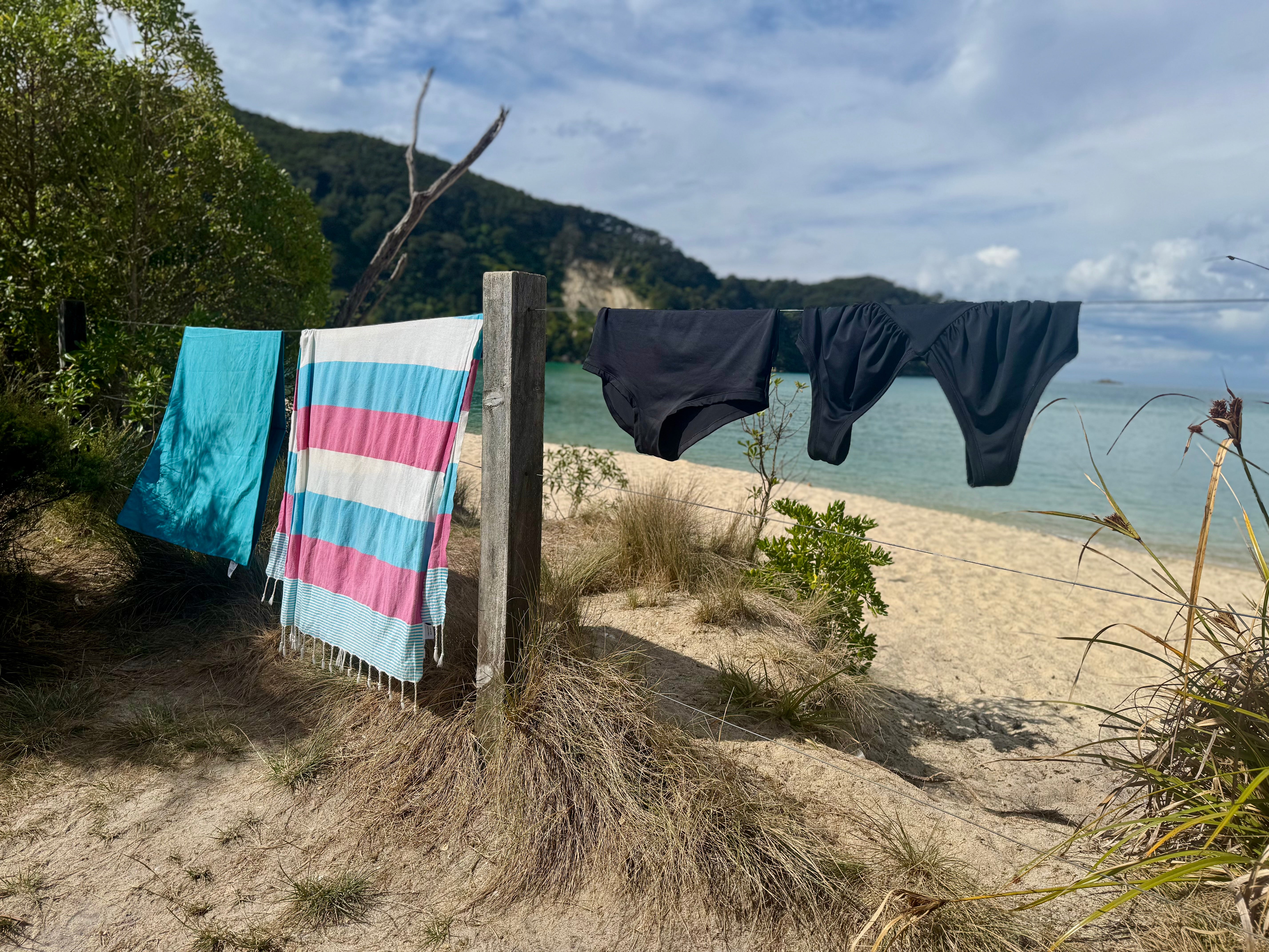 Thunderpants swimwear fabric uses ECONYL® regenerated nylon yarn made from nylon waste otherwise polluting the Earth, like fishing nets, fabric scraps, carpet flooring, and industrial plastic. There is spandex component to the fabric as the swimwear needs the help of a bit of elastic to avoid any swimwear malfunctions when plunging in, other wise they are just as comfy as your undies. All the garments are made locally and lovingly in New Zealand.
