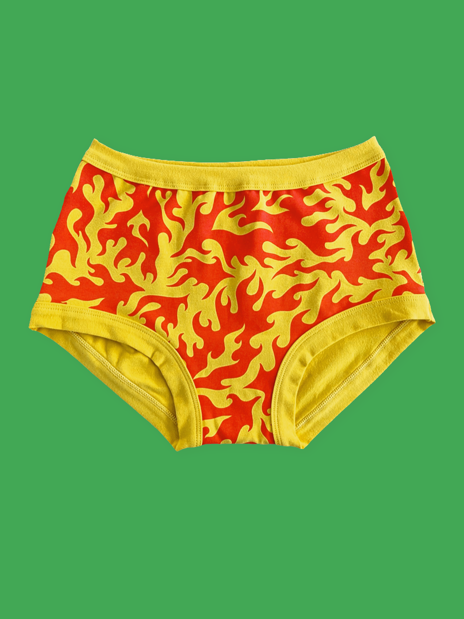 Covered in this HOT Greta Menzies flame print these pants will fire you up all day !
