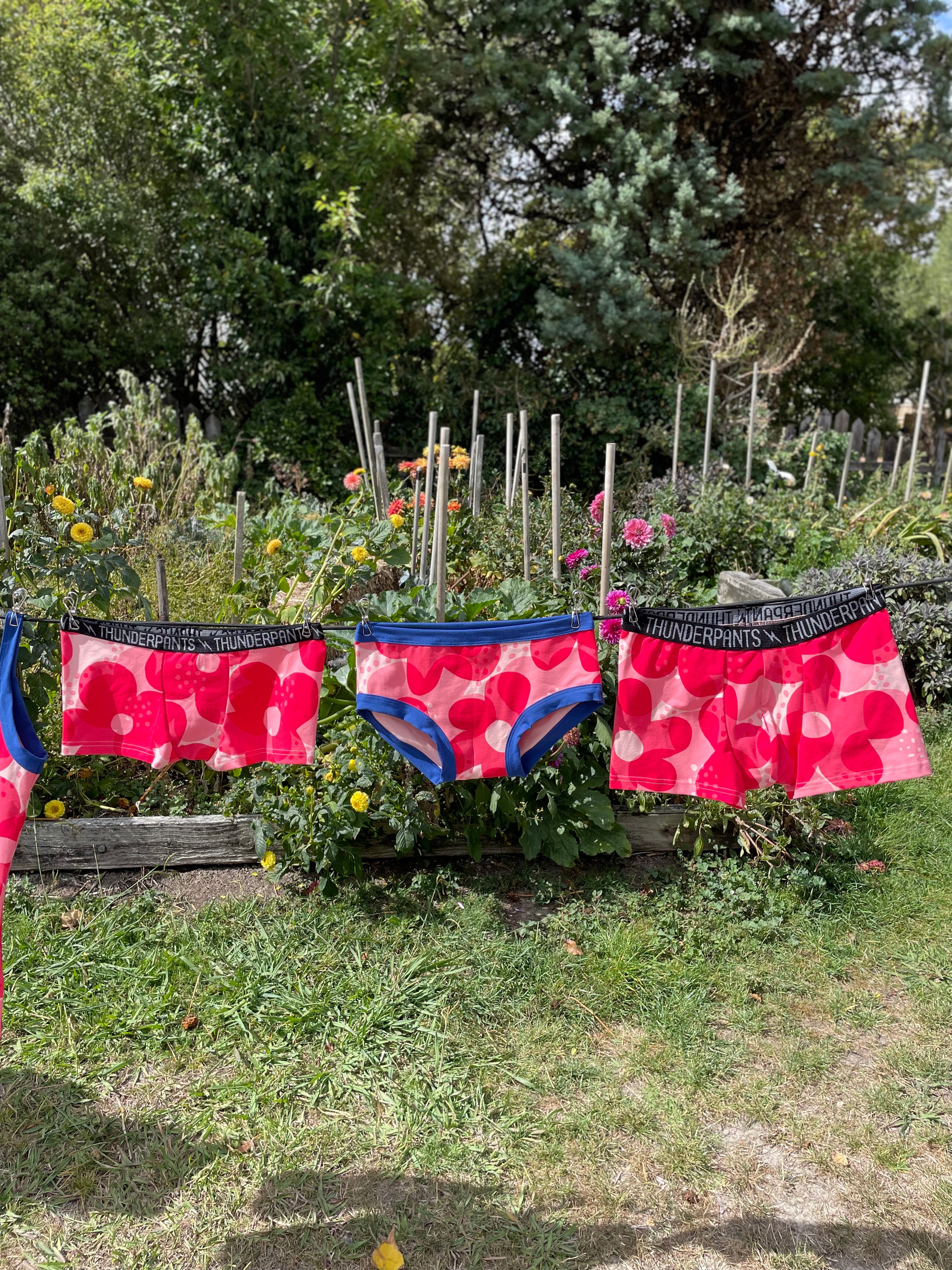 To preserve the vibrant colours and life of the fabric we suggest you do not soak or bleach your Thunderpants items. Use a gentle detergent in a cold machine wash and dry your Thunderpants on the line, not in the drier.