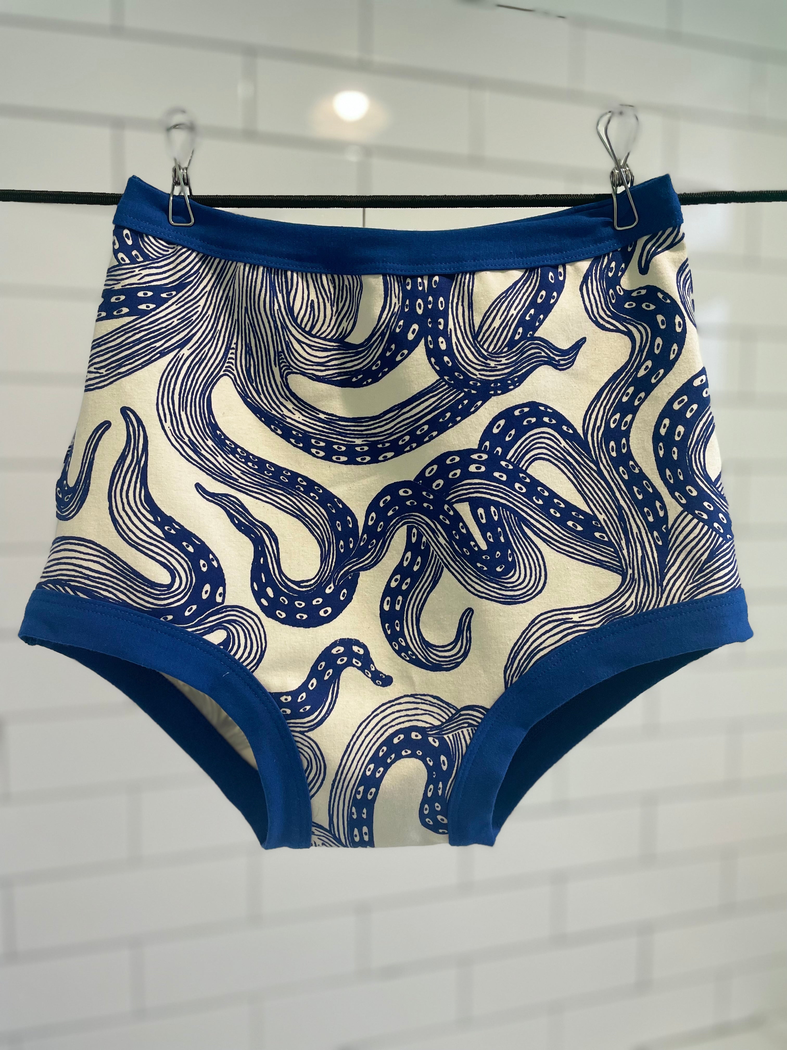 SKY RISE THUNDERPANTS, an extra high waisted version of our originals. They are a very comfortable full brief that sit high on your natural waist and taper in at the top, so stay right where they are meant to all day long.