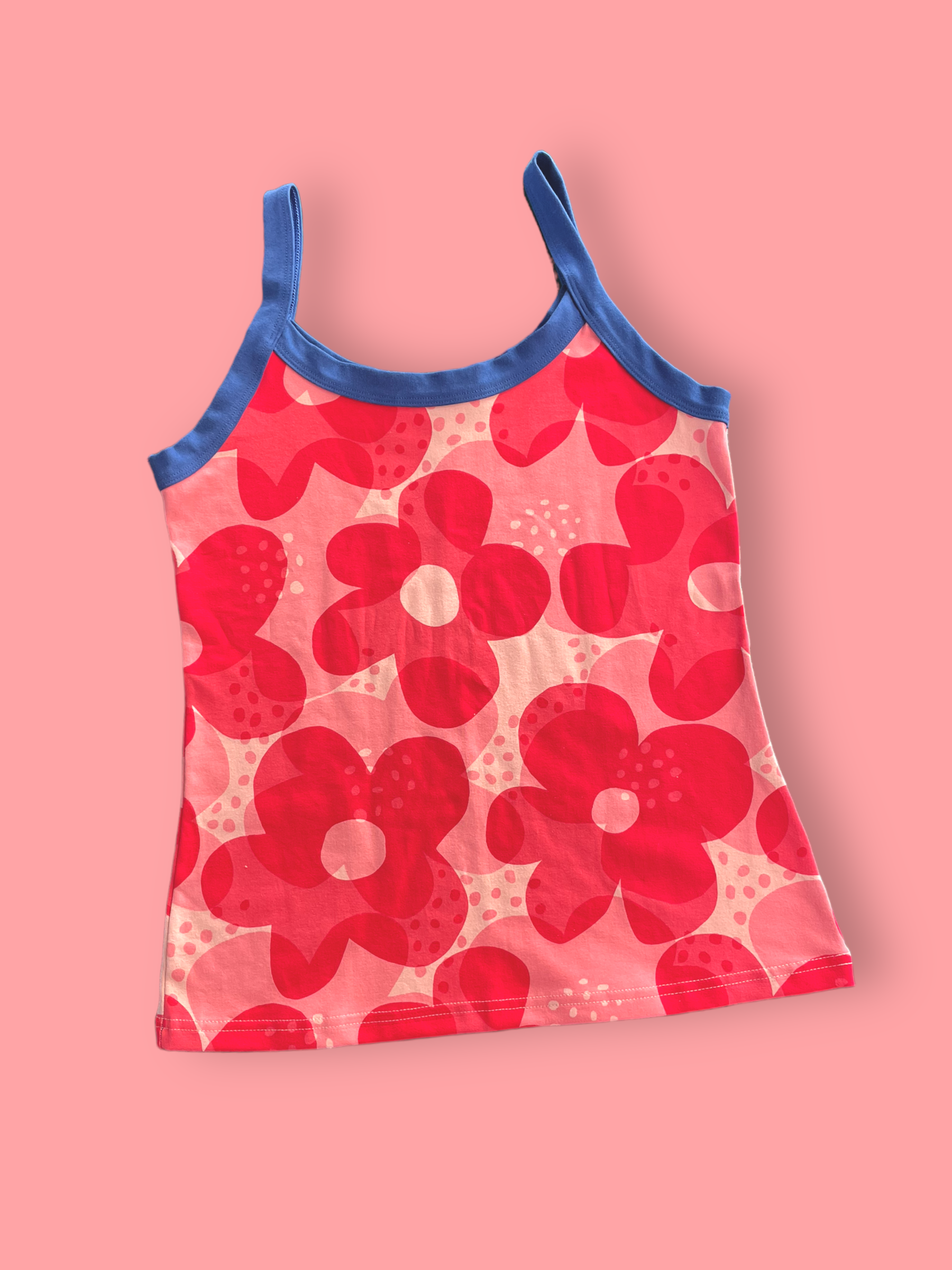 This cami is a great garment for wearing under other things for a warm layer or by itself in the warmer months. Cut with a bit of shaping so it will go out over most peoples hips comfortably. The straps are not too wide but put in just the right place to cover a standard bra strap.