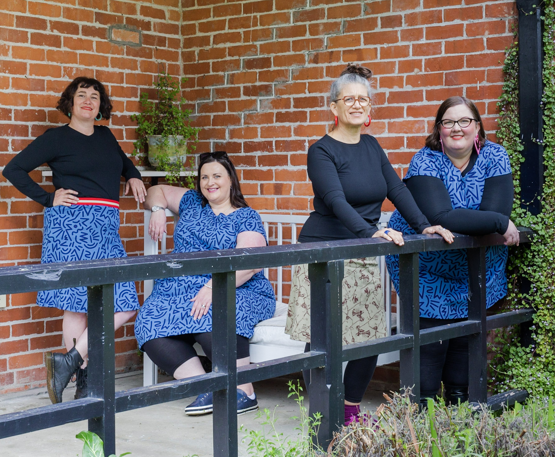 Kathy (blue skirt size 14-16) is wearing a size large.